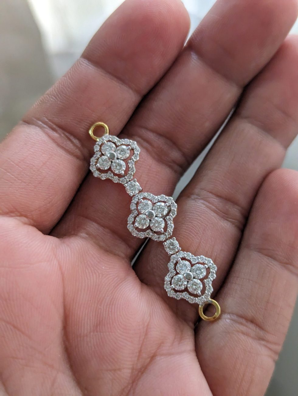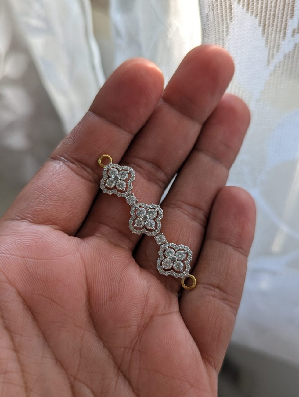 Customised elegant floral diamond mugapu with sparkling blossoms. A beautiful diamond accessory for your mangalsutra, perfect for everyday!